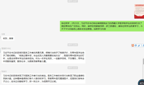 线上学习过程中,支部书记孔老师组织大家积极学习,并发表学习体会,他分享到:“在深入学习习近平总书记的重要回信后,我深受启发。从信中的字里行间可以看出习近平总书记对医务工作者的亲切关怀,对医学教育的高度重视,对医学学生的温暖关怀和关心,习近平总书记鼓励西藏大学医学生珍惜学习时光,练就过硬本领,到人民最需要的地方去。结合实际,作为高校一线思想政治教育工作者,更要教育引领好学生,鼓励大学生深入基层工作,到祖国和人民最需要的地方去,在新时代建功立业,谱写壮丽人生华章。”随后,学院研究生也纷纷发表学习体会。