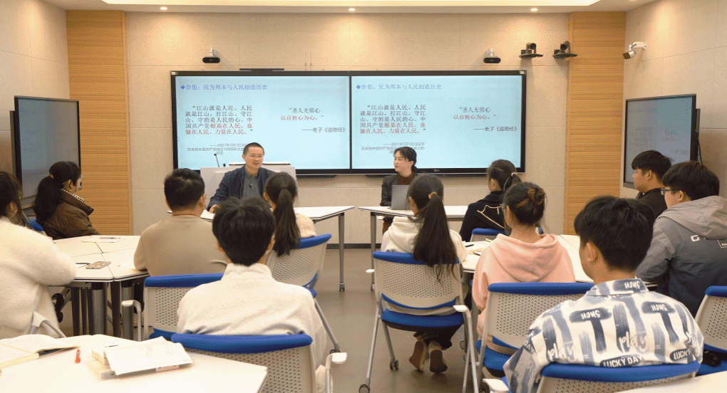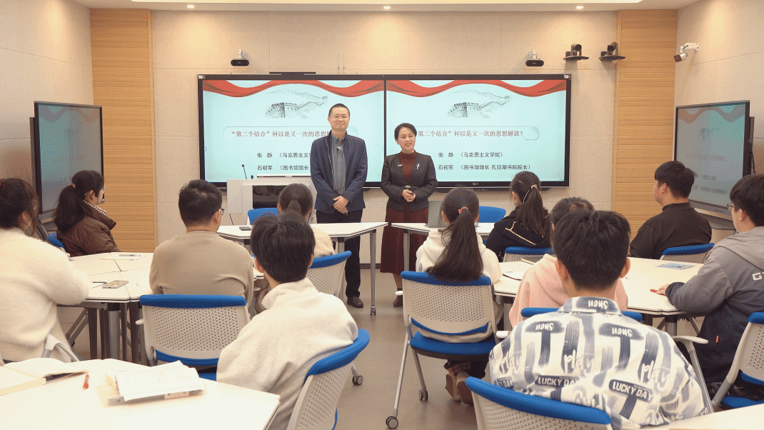 近年来,yl23455永利集团全面贯彻习近平总书记关于“大思政课”建设的重要讲话精神,围绕“问题式专题化”团队教学改革要求,积极探索“双师同堂”思政课教学模式,用好用活校内外资源,不断提高思政课的针对性和实效性。12月7日下午,学院教师张静与图书馆馆长、孔目湖书院院长石初军,在教36栋101室为2022级计算机专业的学生带来了一堂题为《“第二个结合”何以是又一次的思想解放》的 “双师同堂”示范课。