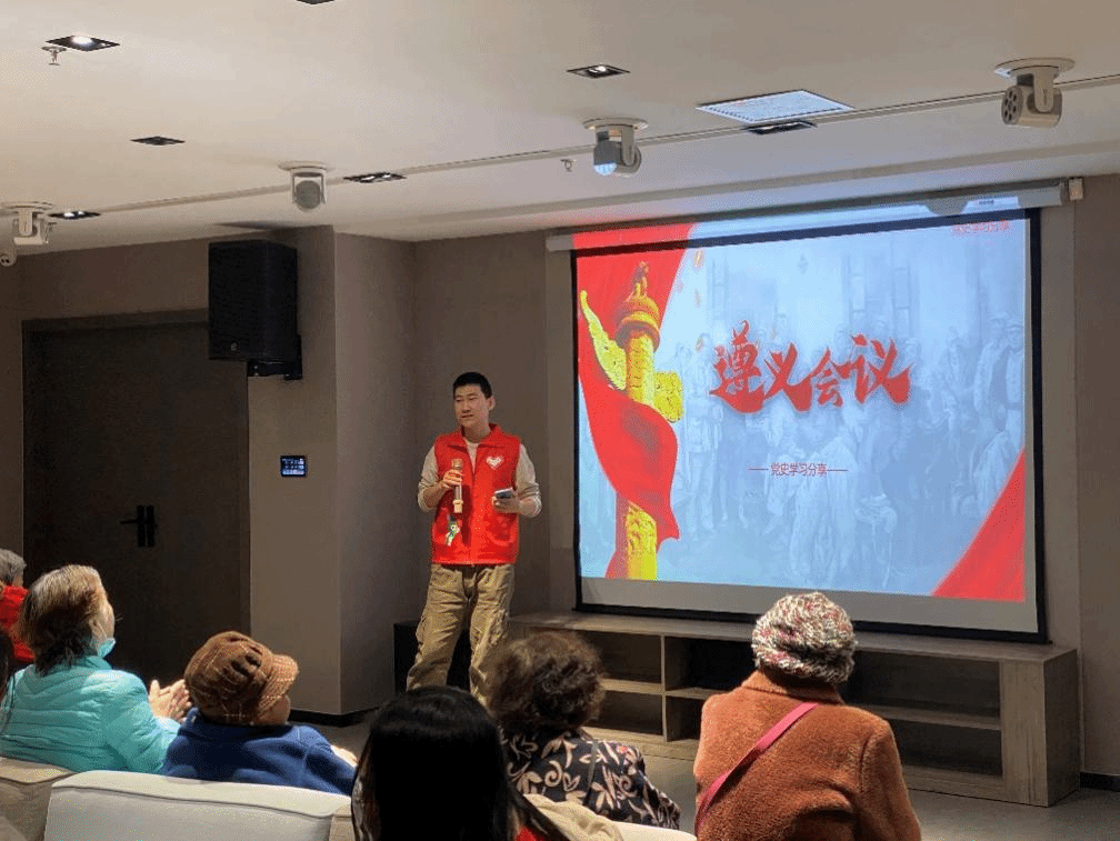 宣讲团成员通过一幅幅历史图片和翔实的资料从遵义会议的历史背景、会议决策的重大意义以及毛泽东同志在会议中的领导作用等方面,系统而生动地讲解了这一中国革命历史上的重要转折点。遵义会议这段红色记忆引发了在场众多老人的共鸣。老人们回忆起自己在战斗岁月中的点点滴滴,那份对革命的忠诚、对胜利的渴望,以及对国家和人民的深厚情感,在时隔多年后依然历久弥新。