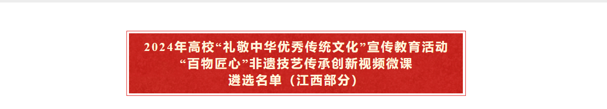 近日,教育部发布《关于2024年高校“礼敬中华优秀传统文化”宣传教育活动结果的公示》,yl23455永利集团报送的《用好用活“江西红”上好上新“大思政课”》及《山歌越千年 文脉永绵延》两项作品成功入选。