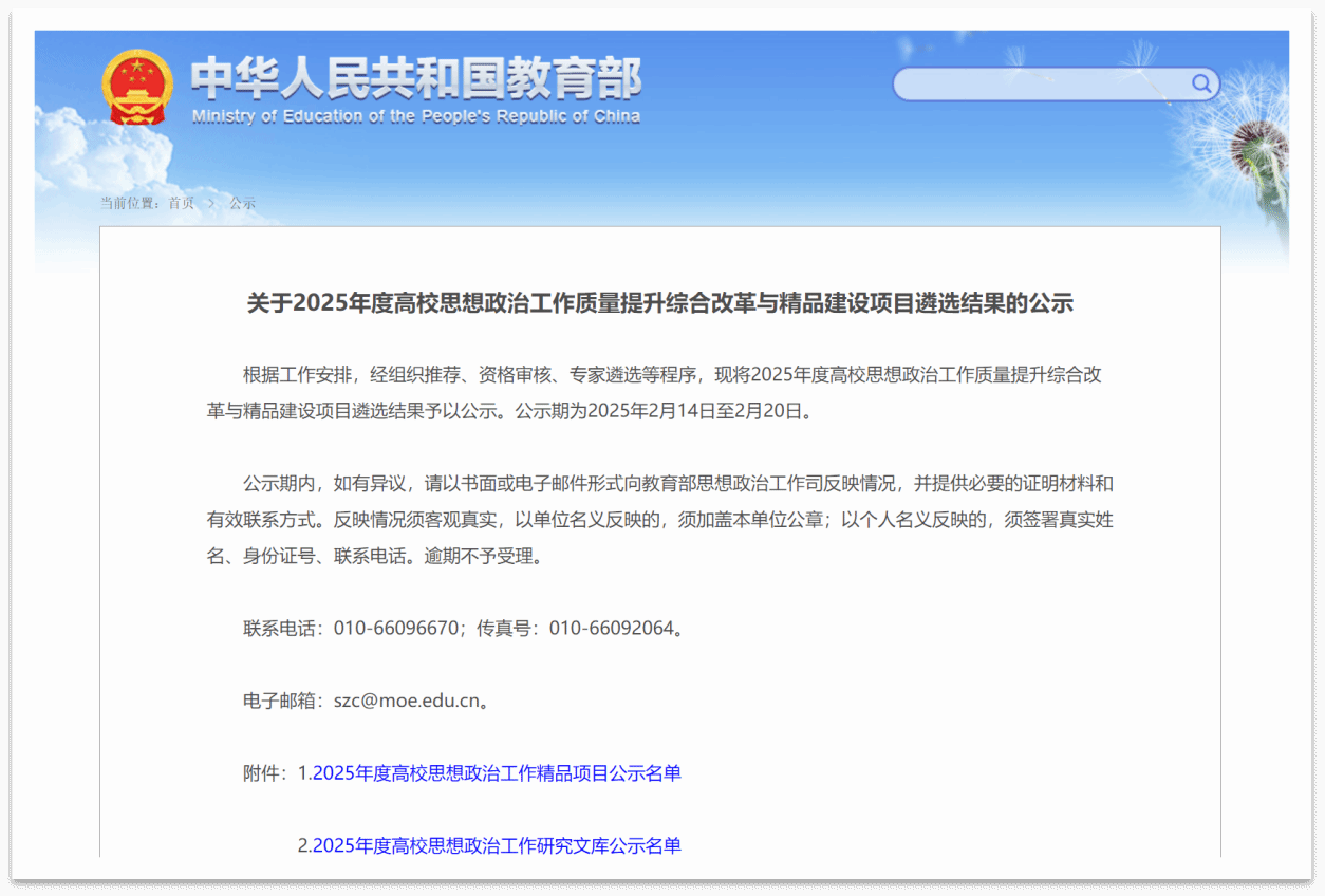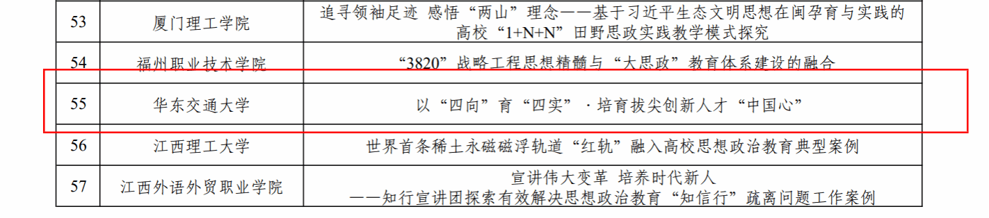 近日,教育部公示了2025年度高校思想政治工作质量提升综合改革与精品建设项目的遴选结果。王冰雪老师申报的2025年度新时代伟大变革融入高校思想政治教育典型案例《以“四向”育“四实”,培育拔尖创新人才“中国心”》成功入选,具体情况如下: