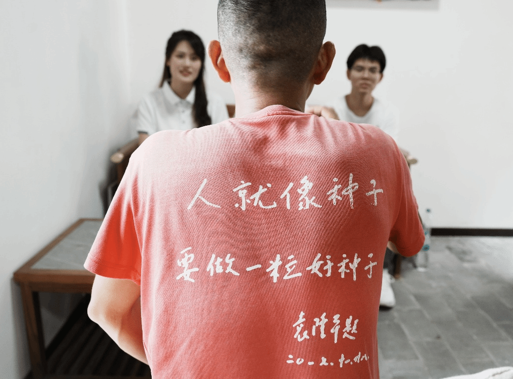 随后,实践队有幸采访了袁隆平院士的侄子袁定贵先生。令实践团成员们深受触动的是袁定贵先生极其朴素的穿着:一件印着袁隆平院士名言 “人就像一粒种子,要做好一粒种子” 的普通文化衫,脚上是一双沾着泥土、用于田间劳作的布鞋。这身装扮,正是袁隆平院士及其家族扎根大地、心系苍生、朴实无华精神的生动写照。