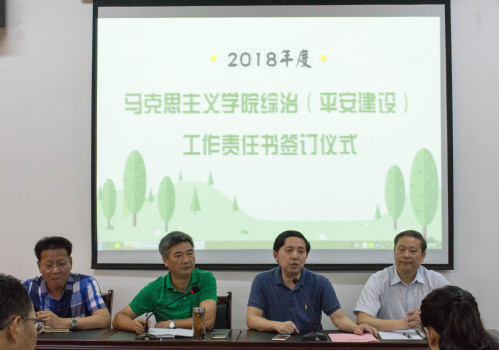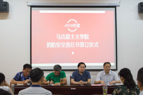 签订仪式上,丁佐湘院长、段世年书记代表学院分别与马原、概论、纲要、基础四个教研室负责人签订了《综治(平安建设)工作责任书》和《消防安全责任书》。