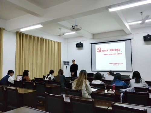 2018年11月14日,yl23455永利集团研究生党支部召开学习《中国共产党纪律处分条例》主题学习会,全体研究生党员参加,学习会由辅导员孔柠檬主持。