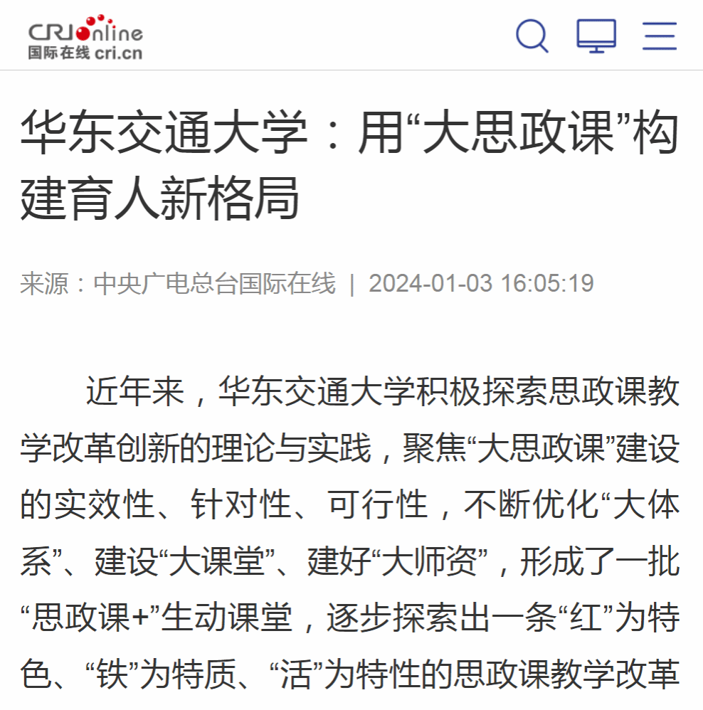 yl23455永利集团积极探索思政课教学改革创新的理论与实践,聚焦“大思政课”建设的实效性、针对性、可行性,不断优化“大体系”、建设“大课堂”、建好“大师资”,形成了一批“思政课+”生动课堂,逐步探索出一条“红”为特色、“铁”为特质、“活”为特性的思政课教学改革创新之路。