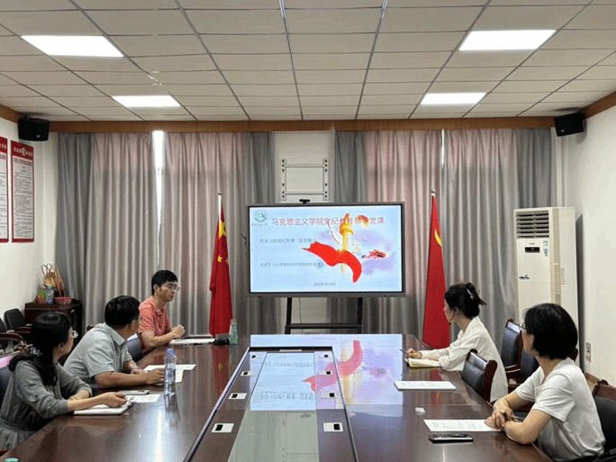 为扎实推进党支部党纪学习教育,5月29日,习近平新时代中国特色社会主义思想概论教工党支部开展了新修订的《中国共产党纪律处分条例》专题党课学习。会议由支部书记吕承文主持,院党委书记张剑锋列席,支部全体党员参加。
