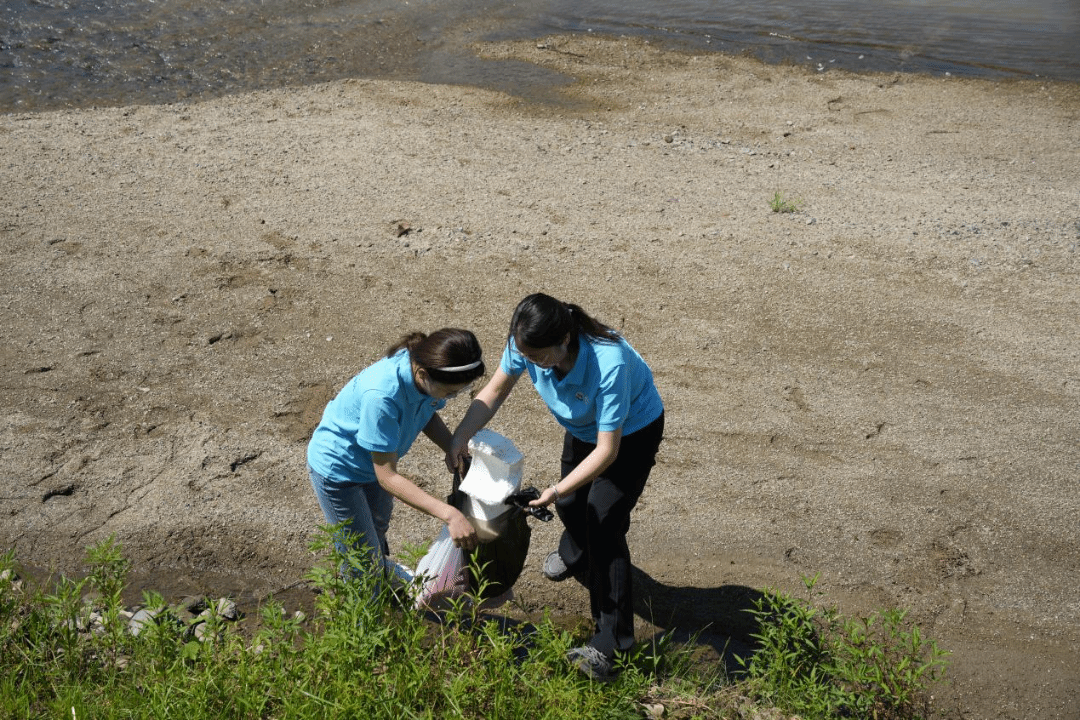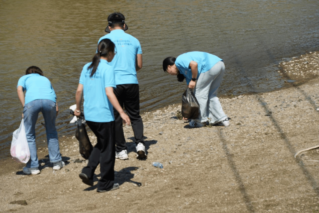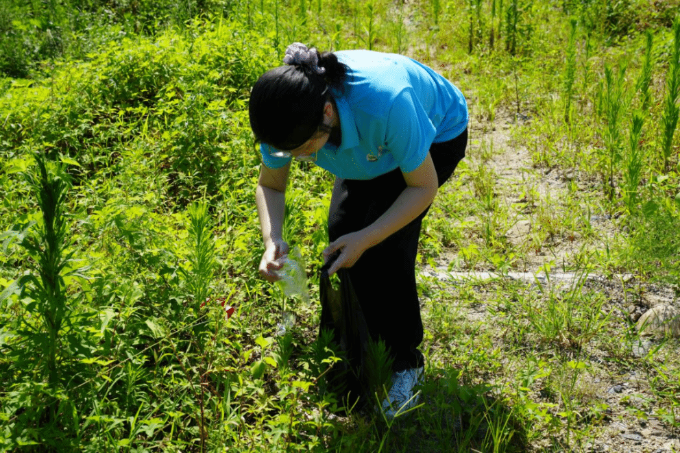 在简短的动员和分工后,研究生们迅速投入到郑溪河沿岸的清洁工作中,将散落在岸线周边的白色塑料、烟头等垃圾收集到垃圾袋内。尽管天气炎热,但研究生们的热情丝毫不减。他们在骄阳下仔细搜寻,不放过任何一个角落。经过大家一个上午的共同努力,郑溪河沿岸的环境卫生得到了显著改善,变得洁净了许多。