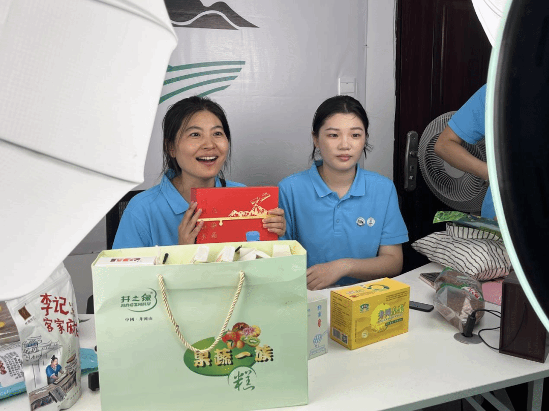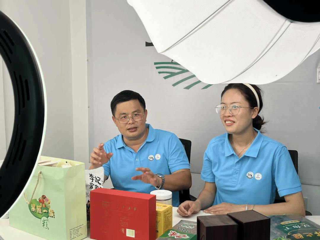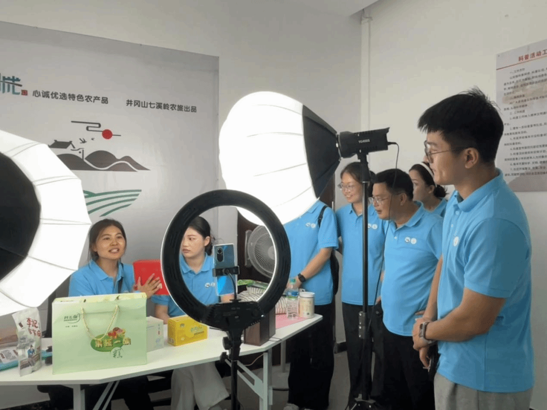 接着,研究生们来到新城镇党群服务中心,在工作人员的带领下来到了助农直播间。