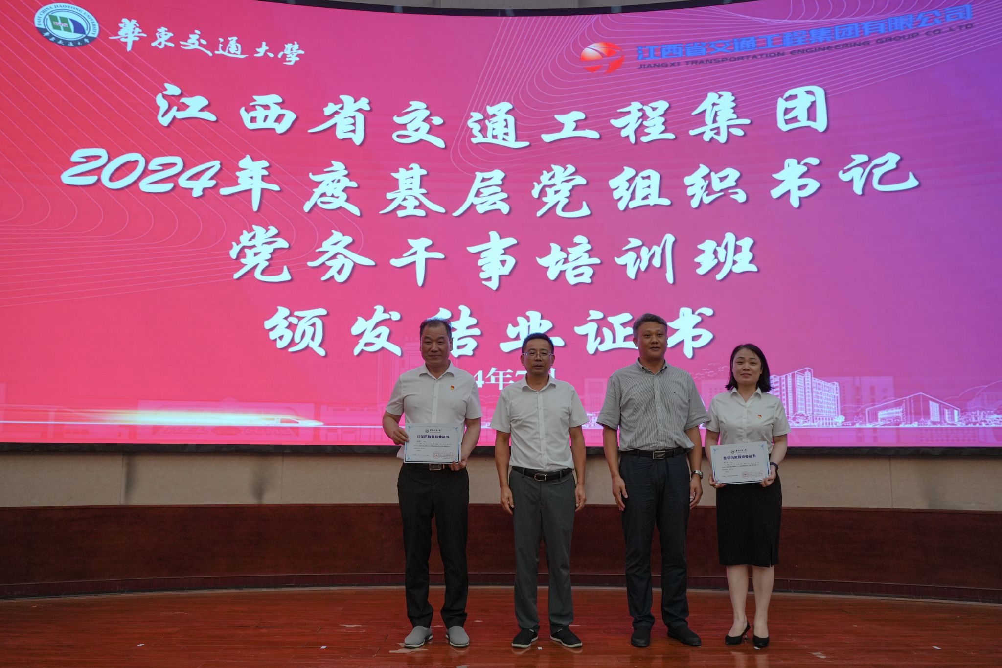 7月31日,由学院承办的江西省交通工程集团2024年度基层党组织书记、党务干事培训班结业仪式在我校北区图书馆圆形报告厅举行。江西省交通工程集团党委副书记章利明、yl23455永利集团院长张剑锋出席结业仪式,结业仪式由副院长刘晓伟主持。