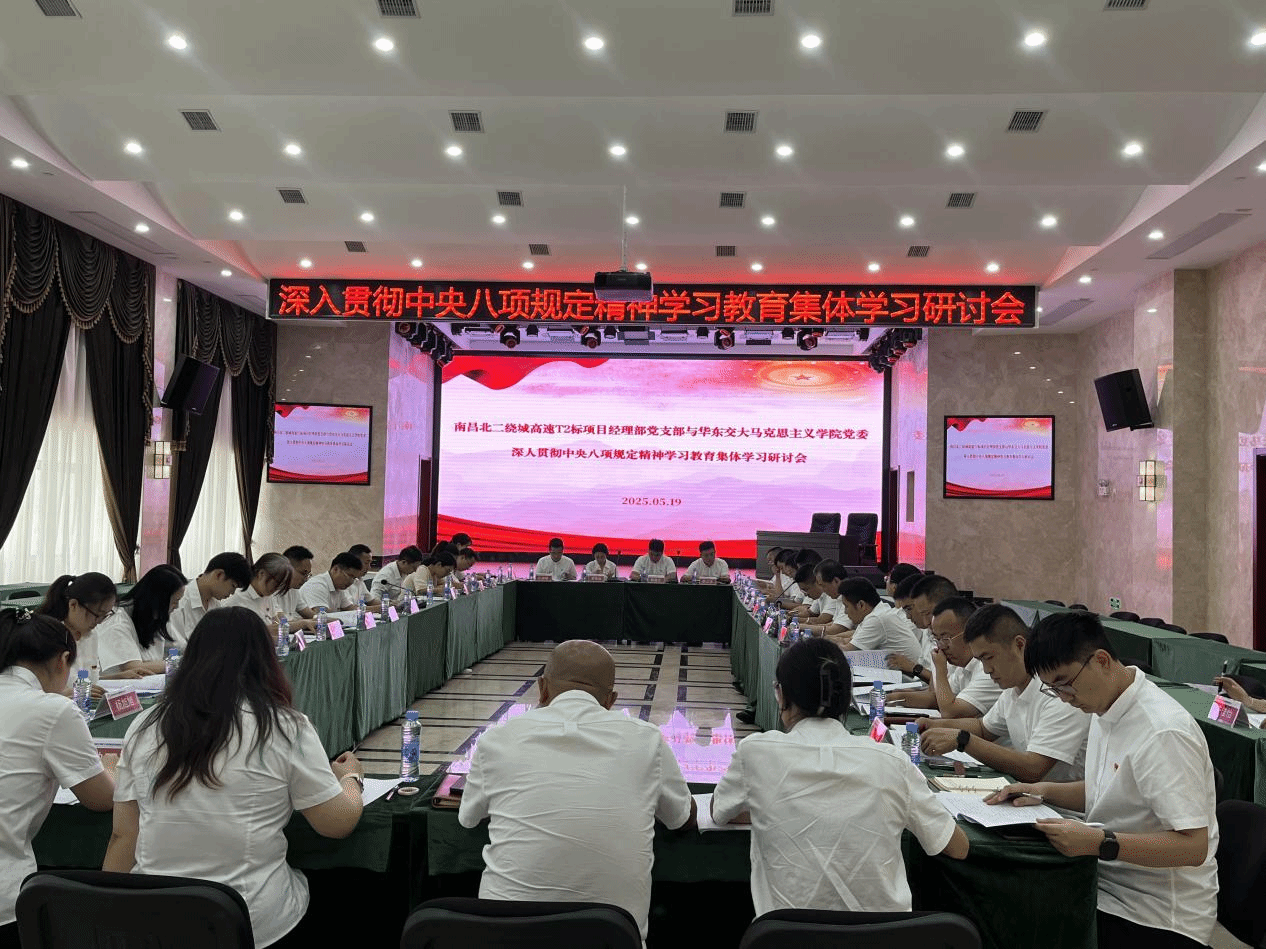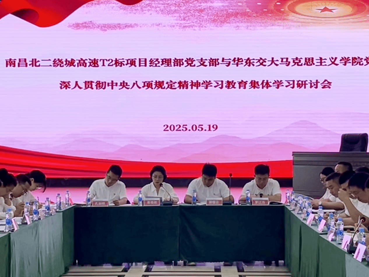 随后,南昌北二绕城高速 T2 标项目党支部书记吴飞领学《纪言:八项规定改变中国》,通过鲜活案例展现八项规定实施以来党和国家事业的全方位变革。他结合项目建设实际,指出要将纪律及作风要求贯穿工程管理全过程,以优良作风保障项目高质量推进。