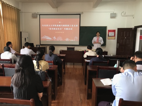 5月7号下午,yl23455永利集团基础与纲要教工党支部组织开展党员固定活动日活动,以庄重的形式,为一到五月份入党的丁佐湘、李晓红、姚卿善、黄颖、袁连红、吴琦、王晓旭、张文俭、刘羽、汪凡家、黄梦婷11位党员过政治生日,共同庆祝这个庄严而神圣的日子,缅怀共产党员的初心和使命,永葆党员本色。活动由支部书记姚卿善主持。
