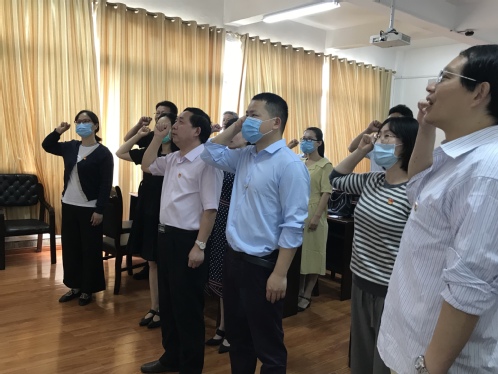 院长丁佐湘带领支部全体党员,在党旗下重温入党誓词,表达对党的忠诚。