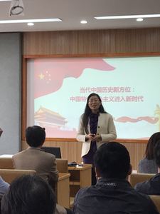 主讲老师徐杰玲以《为什么要深入学习党的十九大精神?》为主题,紧紧围绕党的十九大报告和习近平新时代中国特色社会主义思想这个主线,从大会主题切入,细述中国特色社会主义新时代论断的科学依据和中国特色社会主义新时代的主要特征,全面解读党的十九大报告、传递党的十九大精神,强调了坚定“四个自信”对进一步推进中国特色社会主义伟大事业、实现“两个一百年”奋斗目标和实现中华民族伟大复兴的中国梦具有重要意义。