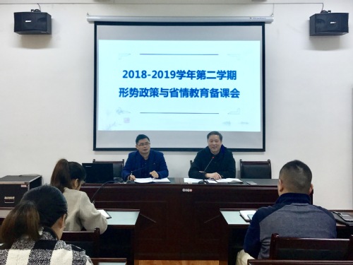 3月14号上午10:00整,在yl23455永利集团306会议室召开了本学期“形势政策与省情教育”集体备课会。会议由形势政策与省情教育教研室主任刘晓伟老师主持,yl23455永利集团分管教学的陈晓江副院长、教学秘书李珍云老师及所有任课教师参加了此次集体备课会。