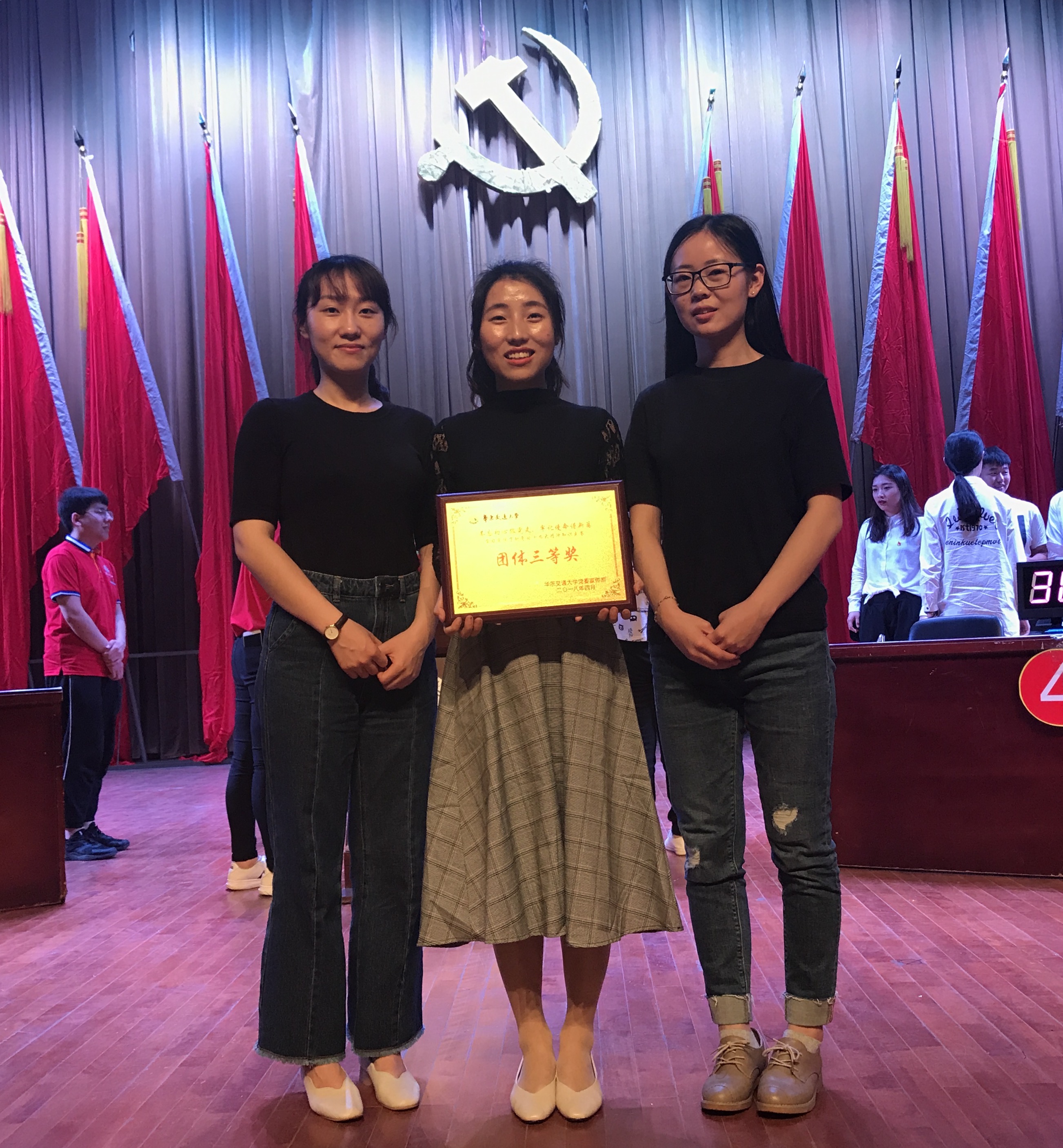 2018年4月22日,“不忘初心跟党走,牢记使命谱新篇”学习宣传贯彻党的十九大精神知识竞赛在南区礼堂隆重开幕。我院黄梦婷老师、16级思政专业要丹丹、17级思政专业麻钱钱代表yl23455永利集团参赛,荣获了团体三等奖。我院研究生自发组成拉拉队,热情呼喊口号,为选手们加油助威。