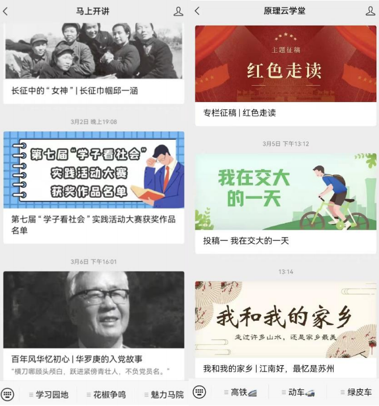 学校重点借助超星、智慧树等网络教学平台,打造《马上开讲》《原理云学堂》微信公众号,通过“颠倒的教室”把以课堂教学为主的一元化课堂,转向实体课堂与网络课堂、线下学习与线上学习相结合的多元化课堂,让思政课在弘扬主旋律、传播正能量中牢牢占据C位。