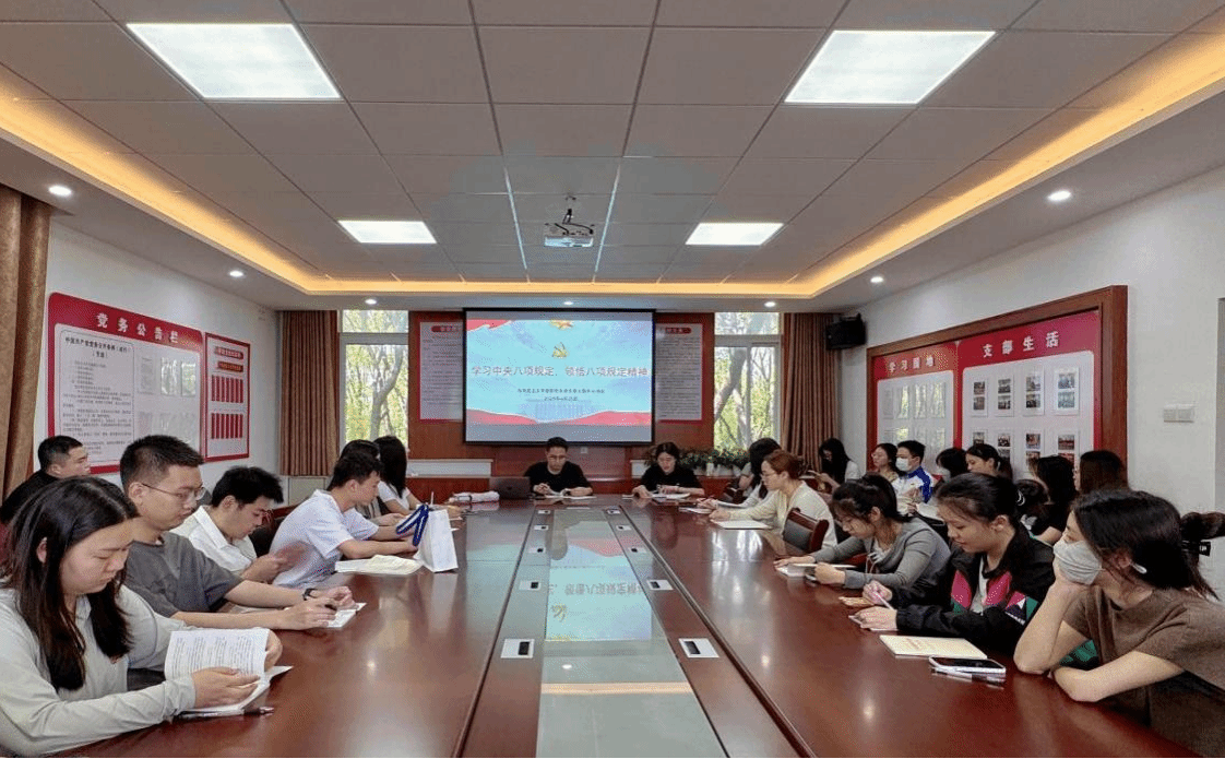为进一步学习习近平总书记关于加强党的作风建设的重要论述,推动深入贯彻中央八项规定精神学习教育走深走实,4月25日,研究生党支部于36栋201开展“深入贯彻中央八项规定精神学习教育”主题党日活动。支部全体党员、入党积极分子参加,活动由支部书记孔柠檬主持。