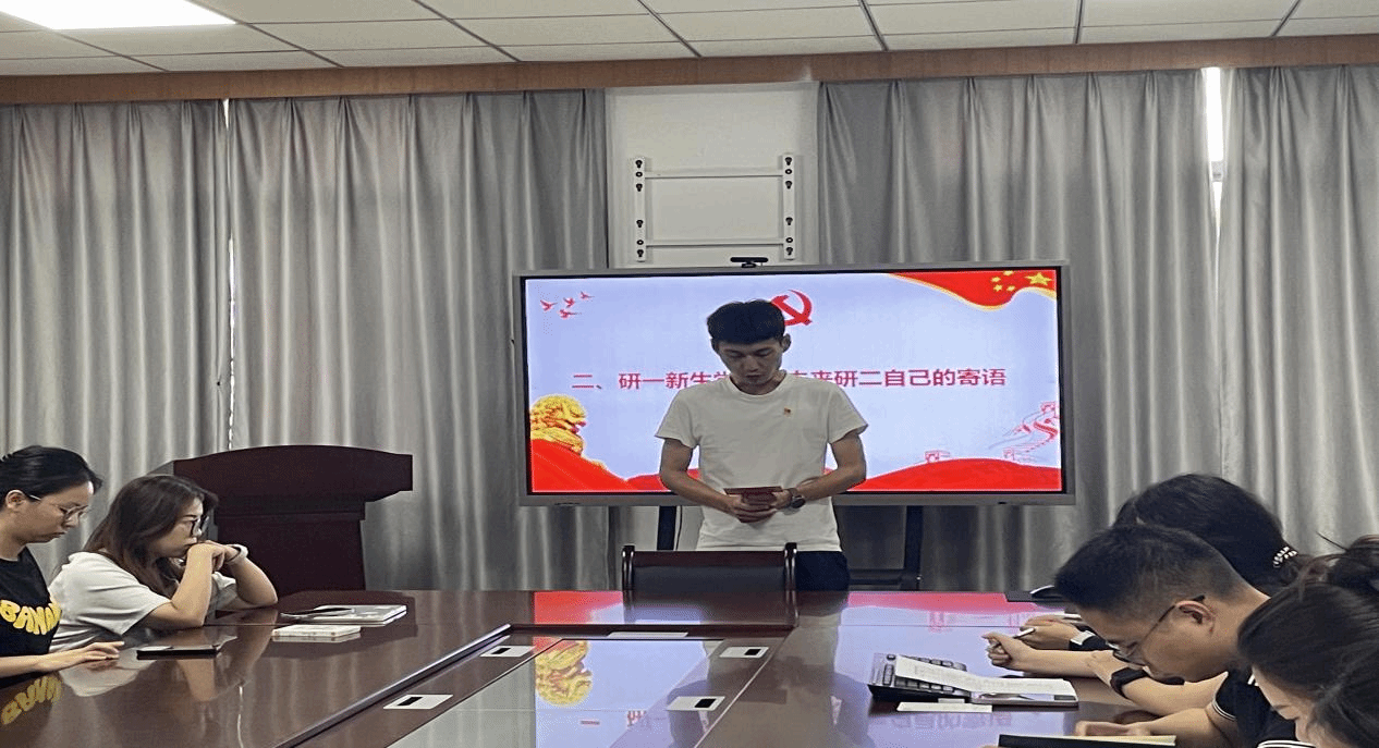 9月28日下午,学院研究生党支部在36栋301开展“思想旗帜领航向,青春挺膺担当”主题党日活动。研究生支部全体党员参加,活动由支部书记孔柠檬主持。