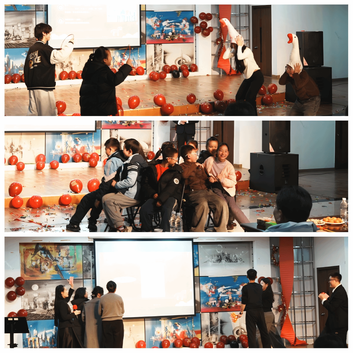 晚会还穿插了游戏、抽奖等互动环节,如套大鹅、抢凳子、猜成语,参与者有机会获得特等奖、一等奖、二等奖、三等奖。这些活动一次次将现场气氛推向高潮,师生们在欢声笑语中感受着学院大家庭的温暖。
